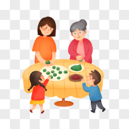 卡通手绘一家人包青团免抠素材