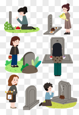 一组卡通清明祭祀祭奠祭拜扫墓套图合集系列四元素