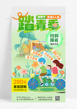 浅绿色简约清明节踏青家庭旅游出行团购海报