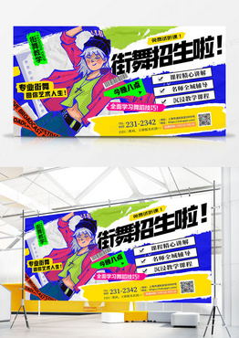 拼贴简约街舞培训班招生啦教育培训展板设计