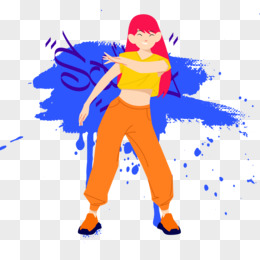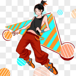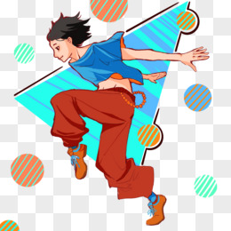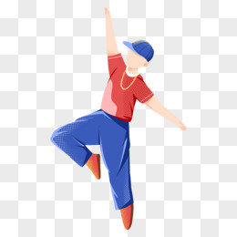 卡通手绘蓝衣男孩表演街舞免抠素材