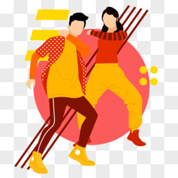 卡通手绘两个男孩在街头表演街舞免抠元素