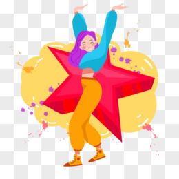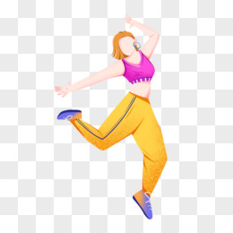 卡通手绘白衣服跳街舞的女孩免抠元素