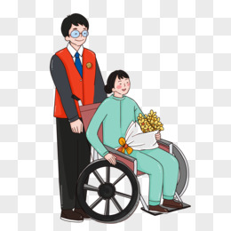 手绘卡通志愿者帮助残疾人物免抠元素图