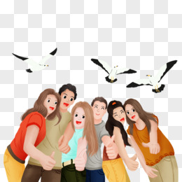 手绘卡通不同肤色年轻朋友在一起免抠元素