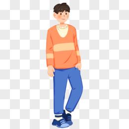 五四青年节青年卡通红色蓝色人物手绘PNG元素