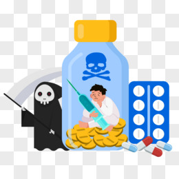 手绘卡通矢量颓废的毒青年泡在药罐里素材