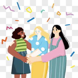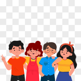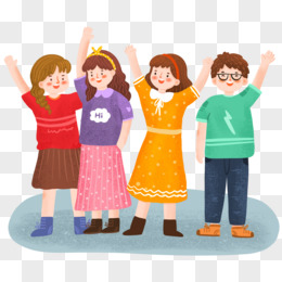 手绘卡通站着一起欢呼的年轻人免抠元素