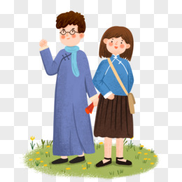手绘卡通穿民国服饰的男女青年插画免抠元素
