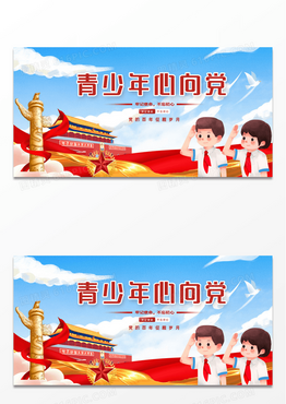中国风卡通青年学生青少年心向党党建展板