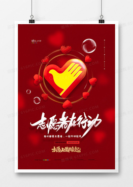 红色大气中国青年志愿者日海报设计