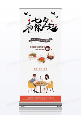 矢量约惠七夕促销海报浪漫情人节展架简约