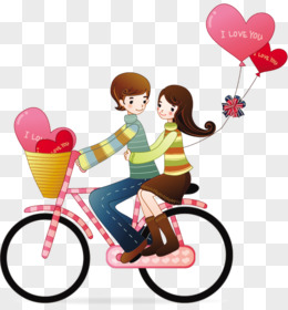 手绘情侣骑自行车免抠元素