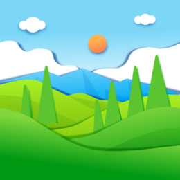 手绘剪纸风景观绿草青山素材