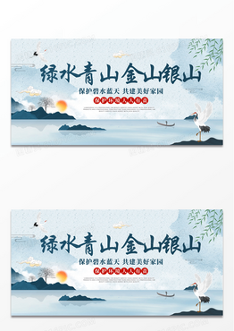 简约绿色水彩水墨绿水青山就是金色银山环保宣传展板
