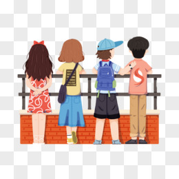 手绘四个青年人背影元素