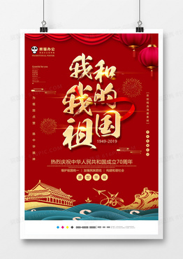 红色大气我和我的祖国国庆海报设计