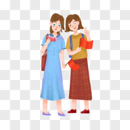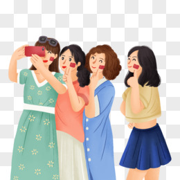 手绘插画风姐妹们自拍免抠元素元素