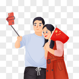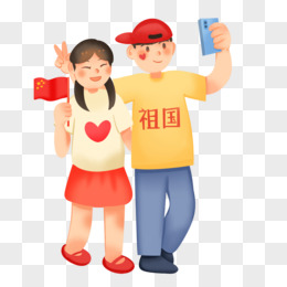 手绘卡通国庆节出游自拍免抠素材