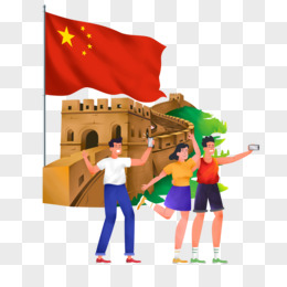 手绘卡通国庆游长城元素