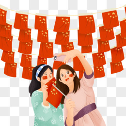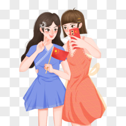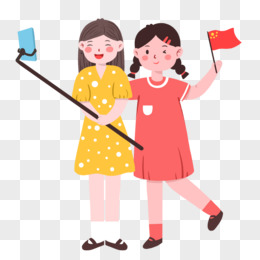 手绘卡通闺蜜国庆出游拍照免抠元素