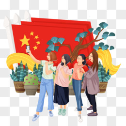 卡通手绘国庆出游朋友自拍元素