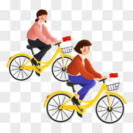 手绘插画风闺蜜骑车出游免抠元素