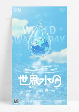 蓝色简约世界水日水滴公益手机宣传海报