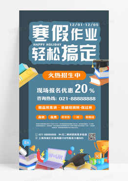 寒假作业轻松搞定补习班辅导班招生现场报名优惠海报设计