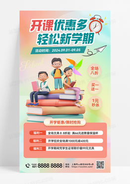 开课优惠多轻松新学期开学季促销海报手机海报