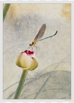 夏天你好小元素蜻蜓竹子手绘海报ppt元素