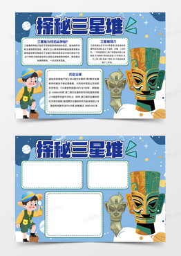 蓝色探秘三星堆青铜器放大镜人物插画简约手抄报