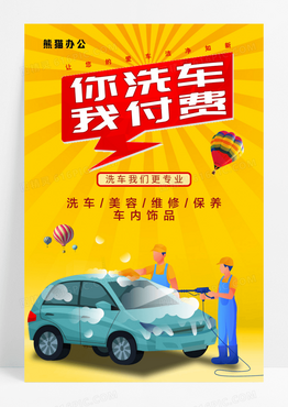 3D自助洗车冲刷清洗的黄色车辆免抠AI元素