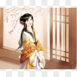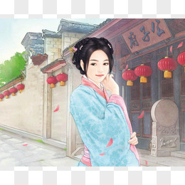 手绘插画肌理风手捧鲜花的美女免抠元素