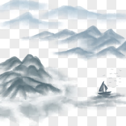 卡通山水水墨丹青元素