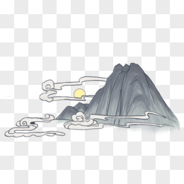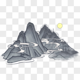 卡通山水水墨画创意元素