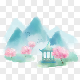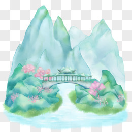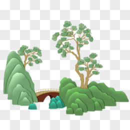 卡通创意清新山水画元素
