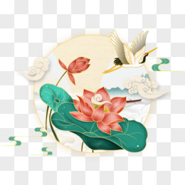 国潮荷叶荷花仙鹤山水风景元素