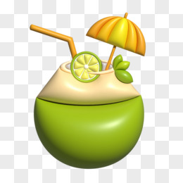 AI膨胀风3D立体椰子椰青饮品元素