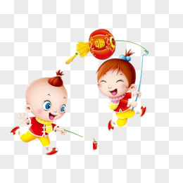 卡通手绘新年孩子们点爆竹免抠元素