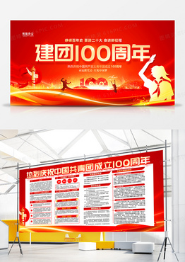 创意红金热烈庆祝中国共青团成立建团100周年双面展板