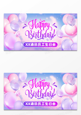 紫色梦幻气球生日快乐员工生日会展板生日快乐展板