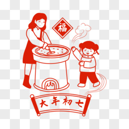 手绘卡通腊月二十六割年肉买肉买生肉免抠元素