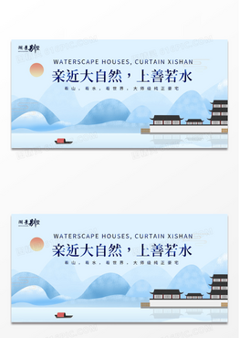 蓝色简约中国风亲近大自然上善若水房地产宣传展板