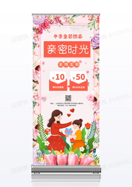 简约粉色创意亲密时光母婴用品促销易拉宝