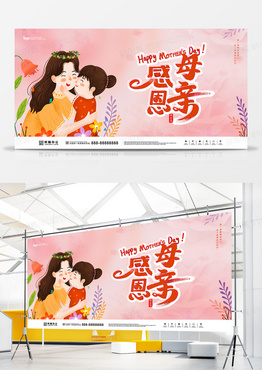 母亲节母女妈妈孩子宝宝拥抱亲吻手绘卡通母爱文艺卡片水墨水彩礼物祝福