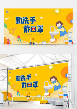 简约大气校园疫情防控勤洗手戴口罩宣传展板