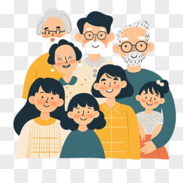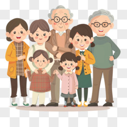 插画一家人全家福全身照免抠元素