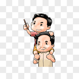 卡通手绘爸爸愁眉苦脸辅导女儿免抠素材