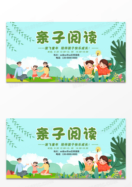 绿色亲子阅读陪伴孩子卡通看书读书展板设计